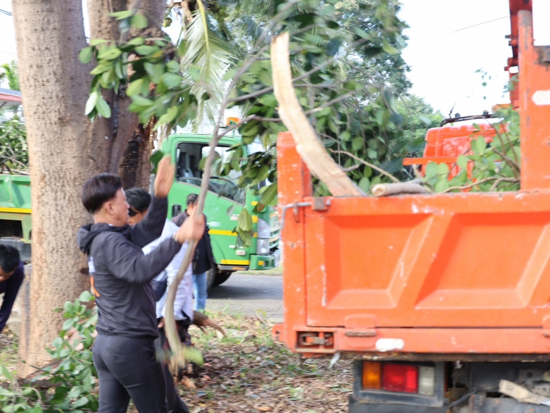 | ลงพื้นที่ตรวจงานตัดแต่งกิ่งไม้-จัดเก็บขยะ ริมถนนโพธิ์กลาง |