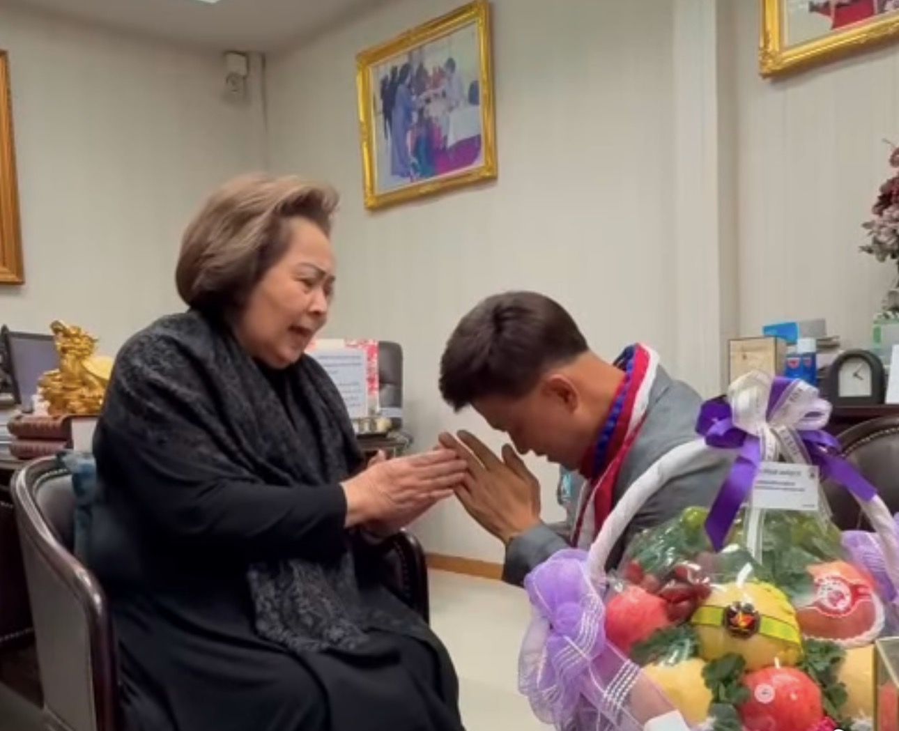 ดร.กิติพงศ์ พงศ์สุรเวท นายกเทศมนตรีตำบลโพธิ์กลาง สวัสดีปีใหม่และขอพรนายไพรัตน์ ทรงเย็น โยธาธิการและผังเมืองจังหวัดนครราชสีมา ,คุณอาเข็มทอง เรืองกฤตยา ผู้หลักผู้ใหญ่ของชาวโคราช