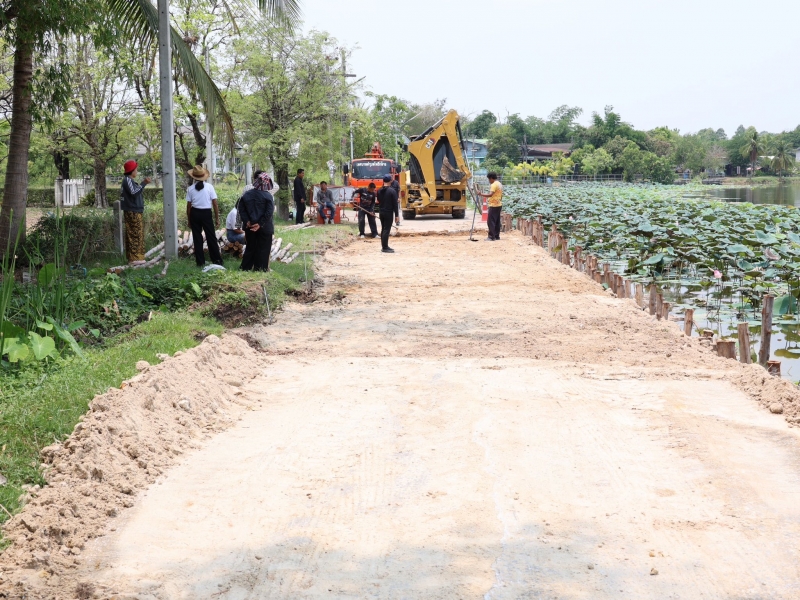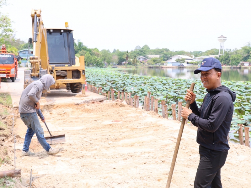 | ร่วมกันซ่อมถนนริมบึงแสนสุข ม.7 ต่อเป็นวันที่ สอง |