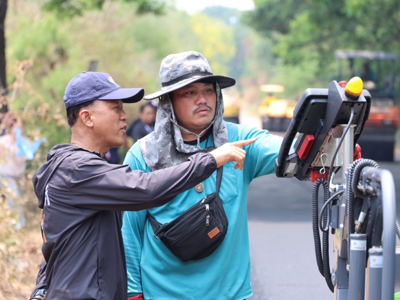 | ตรวจดูการปูยางโครงการปรับปรุงถนนราดยางสายหน้า ช.2-ช.201-สรรพาวุธ |