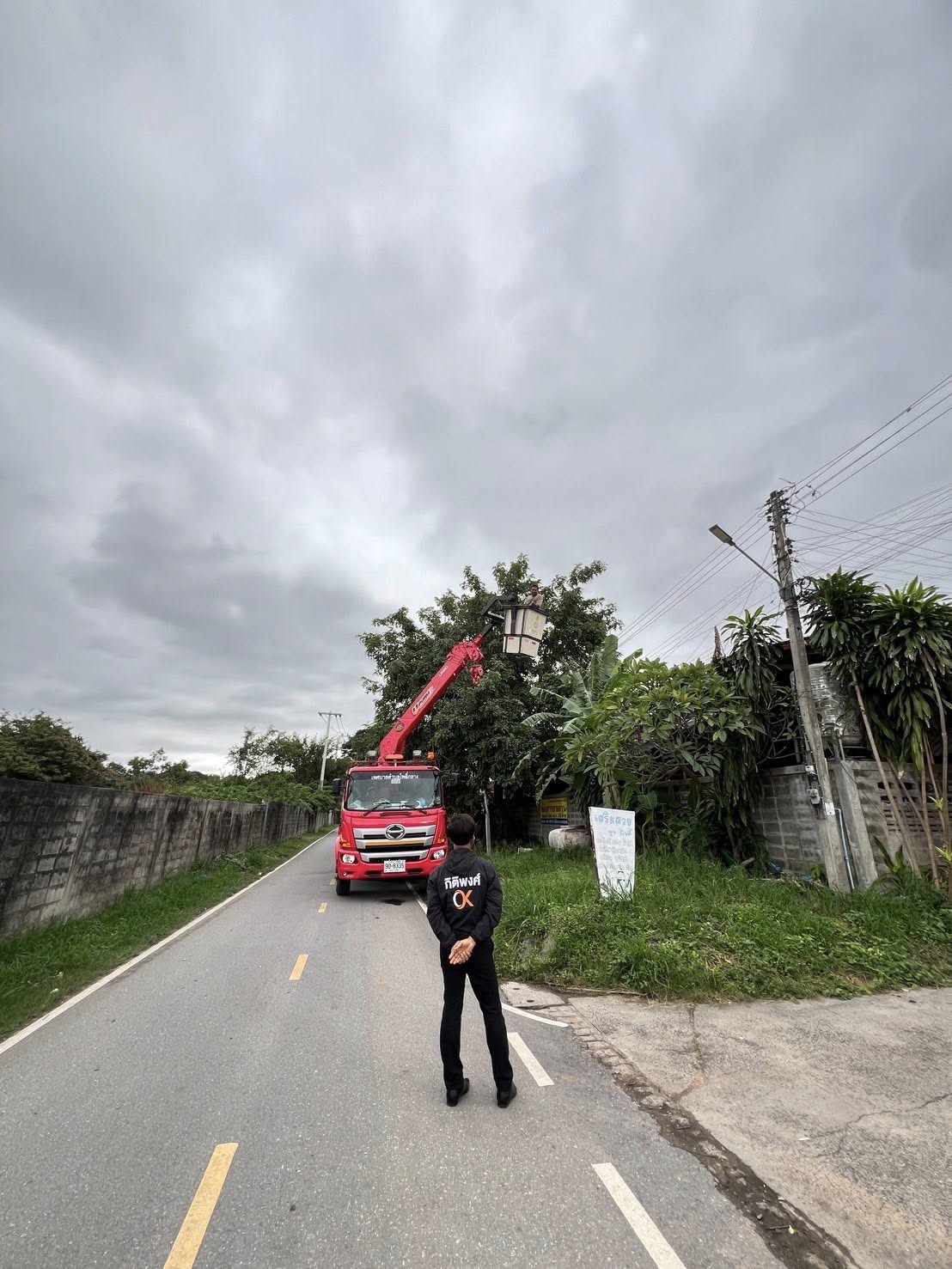ดร.กิติพงศ์ พงศ์สุรเวท นายกเทศมนตรีตำบลโพธิ์กลาง ติดตามช่างไฟฟ้า เพื่อไปแก้ไขไฟฟ้าดับ ซอยฮากกา หมู่ที่ 1 บ้านหนองปรือ สาเหตุเนื่องจาก สายไฟฟ้าขาด ในระหว่างภาระกิจมอบผ้าอ้อมผู้ใหญ่สำหรับผู้ป่วย