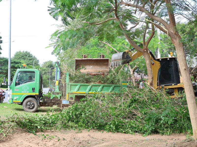 | ลงพื้นที่ตรวจงานตัดแต่งกิ่งไม้-จัดเก็บขยะ ริมถนนโพธิ์กลาง |