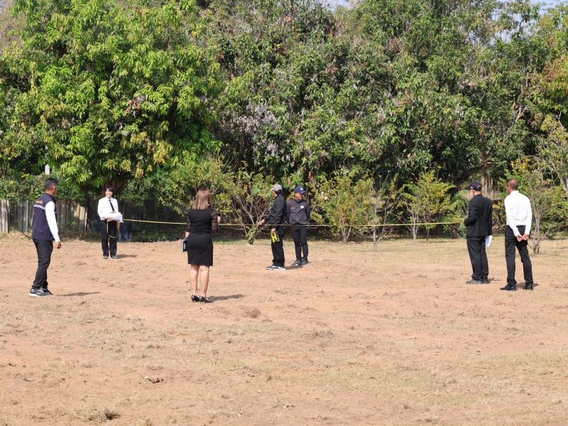 ดร.กิติพงศ์ พงศ์สุรเวท นายกเทศมนตรีตำบลโพธิ์กลาง คณะผู้บริหาร เจ้าหน้าที่ ออกตรวจดูการปรับพื้นที่จัดงานถนนคนเดิน ของดีโพธิ์กลาง