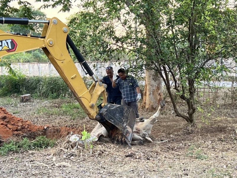 ดร.กิติพงศ์ พงศ์สุรเวท นายกเทศมนตรีตำบลโพธิ์กลาง ได้รับแจ้งจากนายพงศ์สุข แผ่นอุไร เจ้าพนักงานสัตวบาลชำนาญงาน สำนักงานปศุสัตว์จังหวัดนครราชสีมา ว่าพบวัวเสียชีวิต 1 ตัว จากพิษสุนัขบ้า ณ บ.ค่ายสุรธรรมพิทักษ์ ม.9 และขอให้ช่วยฝังกลบด่วน นายกเทศมนตรีฯ รีบออกมาตรวจดูข้อเท็จจริงและให้กองช่าง นำรถ JCB. มาฝังกลบทันที และปศุสัตว์จะนำส่วนศีรษะส่งตรวจห้องแล็ปต่อไป