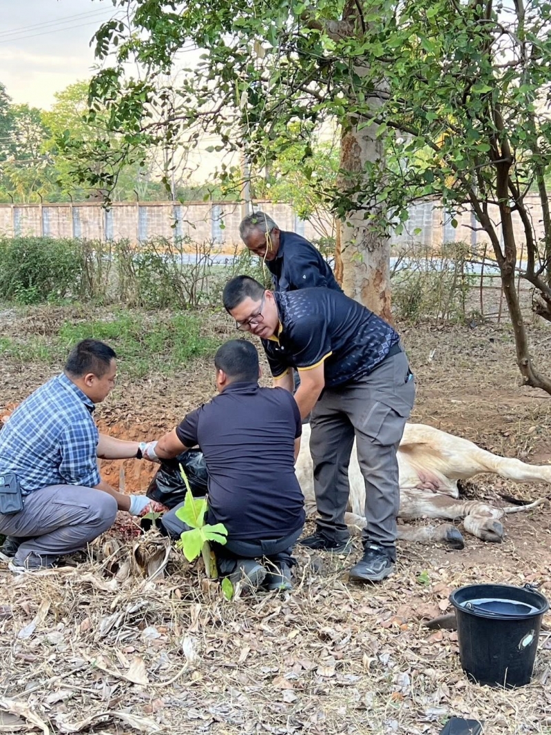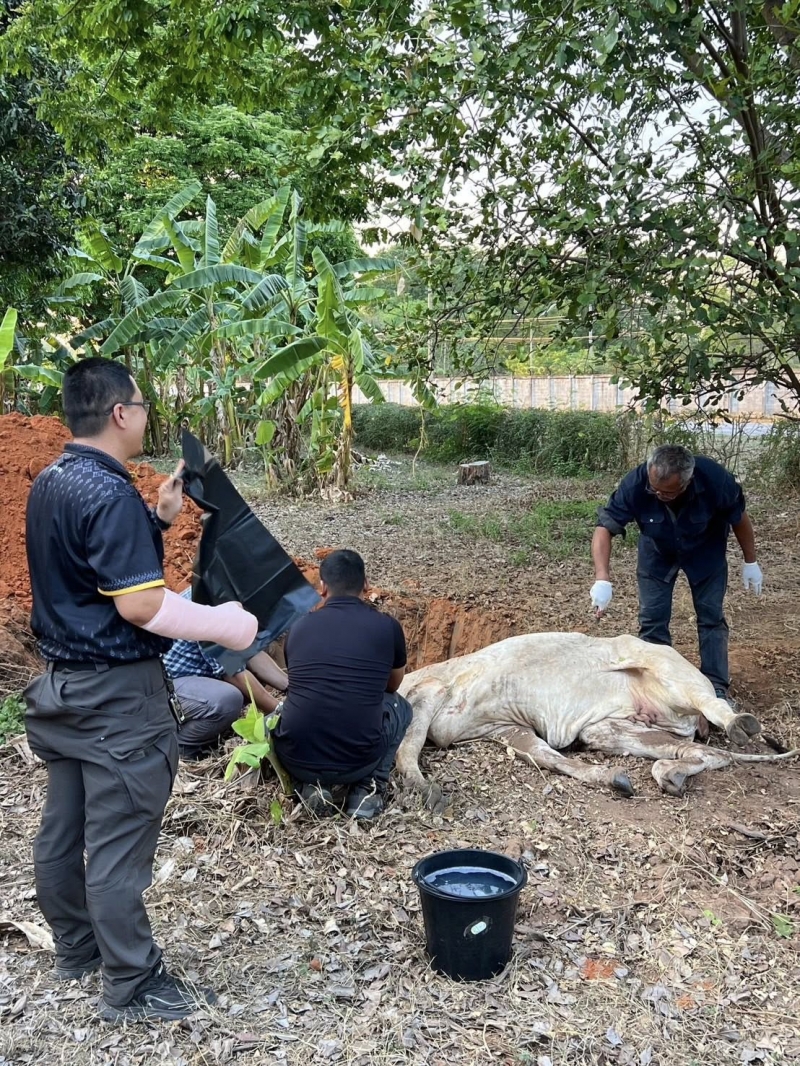| ออกตรวจดูข้อเท็จจริง กรณีพบวัวเสียชีวิต 1 ตัว จากพิษสุนัขบ้า และขอให้ช่วยฝังกลบด่วน |