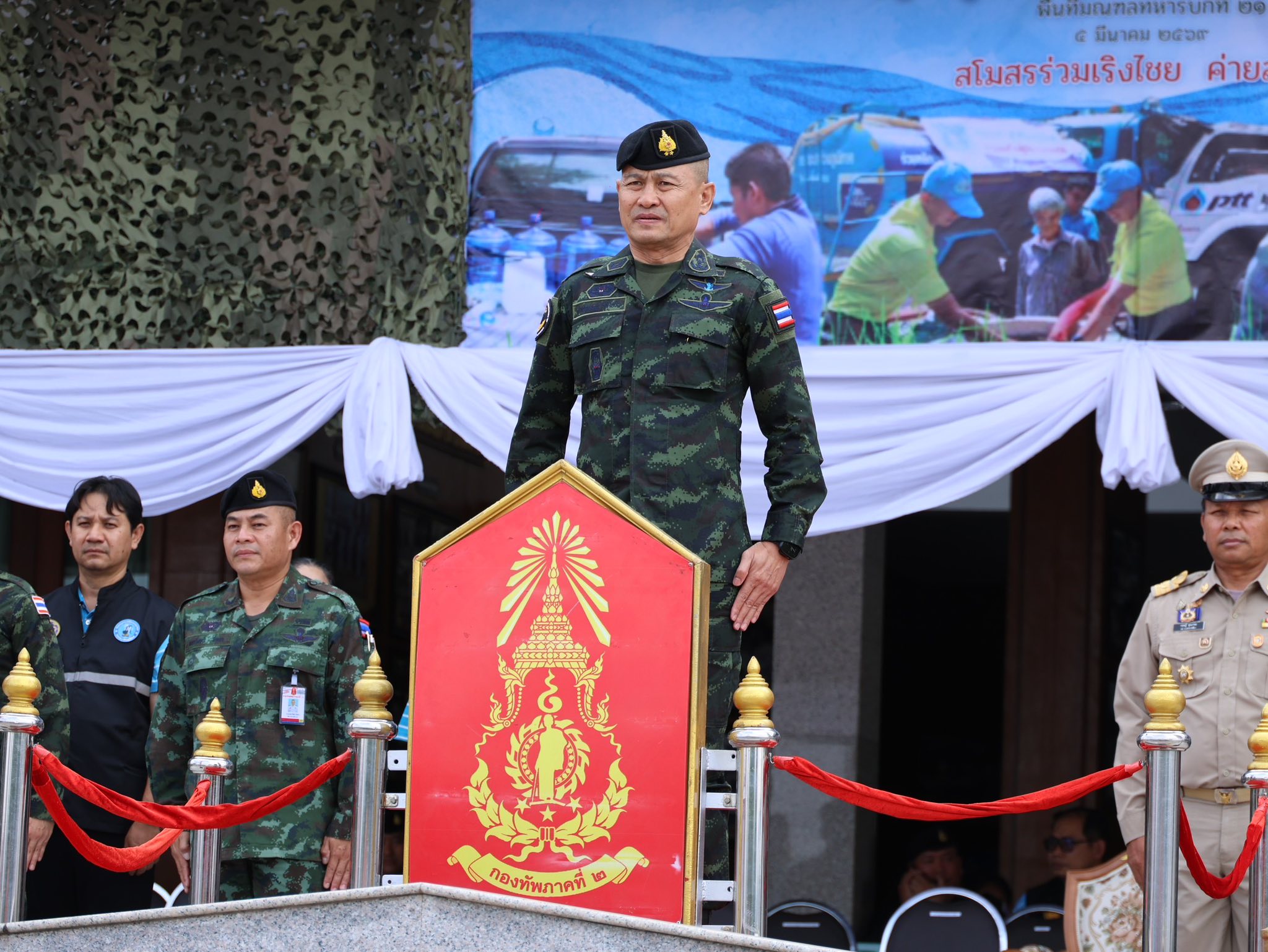 ดร.กิติพงศ์ พงศ์สุรเวท นายกเทศมนตรีตำบลโพธิ์กลาง ร่วมพิธีเปิดโครงการ ราษฎร์ รัฐ ร่วมใจ ช่วยภัยแล้ง ประจำปี 2569 โดยพล.ต.พงศ์กฤษณ์ รุจิโยธิน ผู้บัญชาการมณฑลทหารบกที่ 21 เป็นประธาน นายก อบจ.นครราชสีมา นายกเทศมนตรีนครนครราชสีมา นายกเทศมนตรีตำบลหนองไผ่ล้อม นายกเทศมนตรีตำบลโพธิ์กลาง การประประปาส่วนภูมิภาค ปตท. ป้องกันและบรรเทาสาธารณภัยจ.นครราชสีมาร่วมงาน ณ ลานหน้าสโมสรร่วมเริงไชย ค่ายสุรนารี