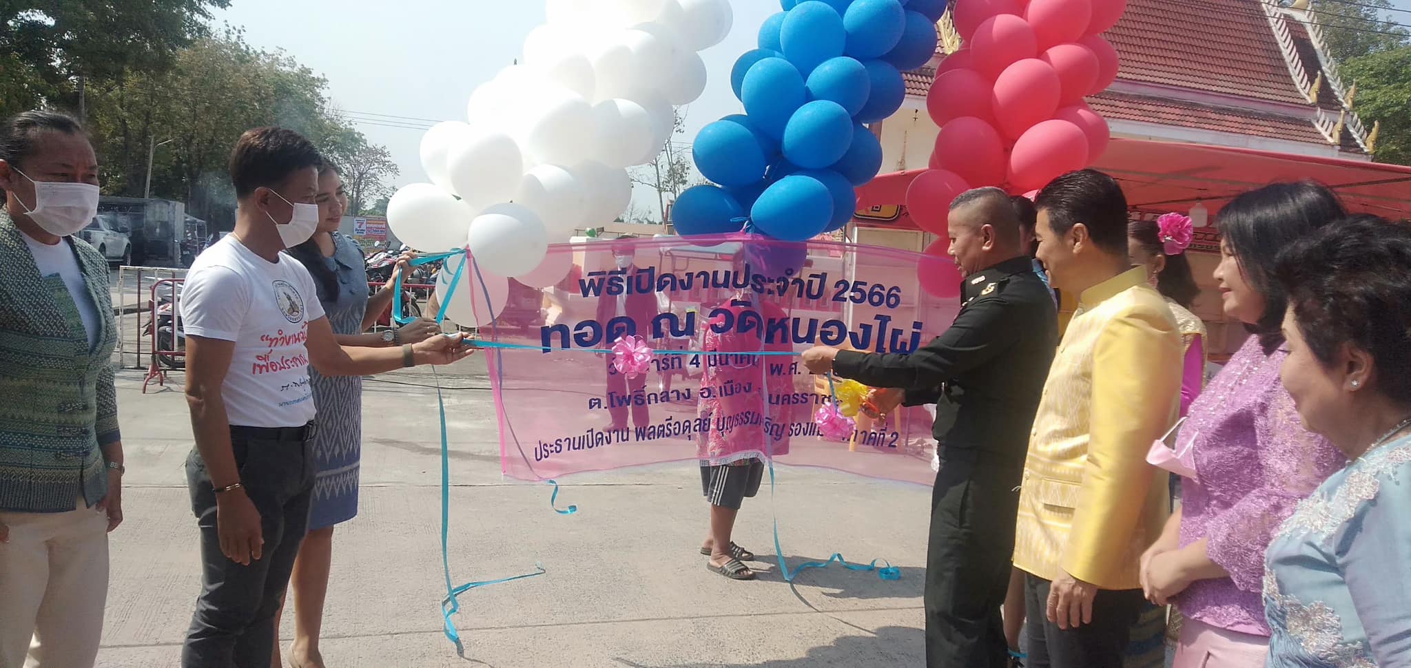 ดร.กิติพงศ์ พงศ์สุรเวท นายกเทศมนตรีตำบลโพธิ์กลาง ร่วมกล่าวต้อนรับและรายงานการจัดงานประจำปี ทอดผ้าป่าสามัคคี วัดหนองไผ่ โดย พล.ต.อดุลย์ บุญธรรมเจริญ รองแม่ทัพภาคที่ 2 เป็นประธาน |