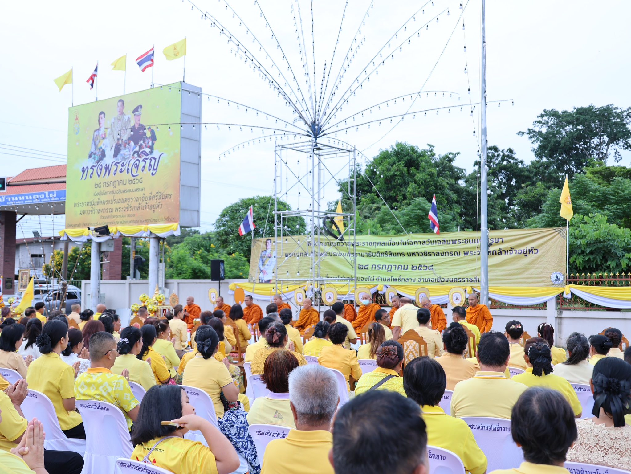 ดร.กิติพงศ์ พงศ์สุรเวท นายกเทศมนตรีตำบลโพธิ์กลาง เป็นประธานตักบาตรถวายพระราชกุศลพระบาทสมเด็จพระเจ้าอยู่หัว เนื่องในวันเฉลิมพระชนมพรรษา พระบาทสมเด็จพระปรเมนทรรามาธิบดีศรีสินทร มหาวชิราลงกรณ พระวชิรเกล้าเจ้าอยู่หัว โดยมีหัวหน้าส่วนราขการ พลเรือน ทหาร ตำรวจ คณะผู้บริหาร สมาชิกสภาเทศบาล กำนัน ผู้ใหญ่บ้าน กรรมการขุมชน และประชาชนชาวโพธิ์กลางร่วมงาน โดยจะนำข้าวสารอาหารแห้งทั้งหมดที่ได้ 5 คันรถ ไปมอบให้กับกองทัพภาคที่ 2 เพื่อนำไปให้เหล่าทหารผู้ปกป้องบ้านเมืองชายแดนไทย-กัมพูชา ณ ถนนศรีโพธิ์กลาง สี่แยกบ้านหนองไผ่
