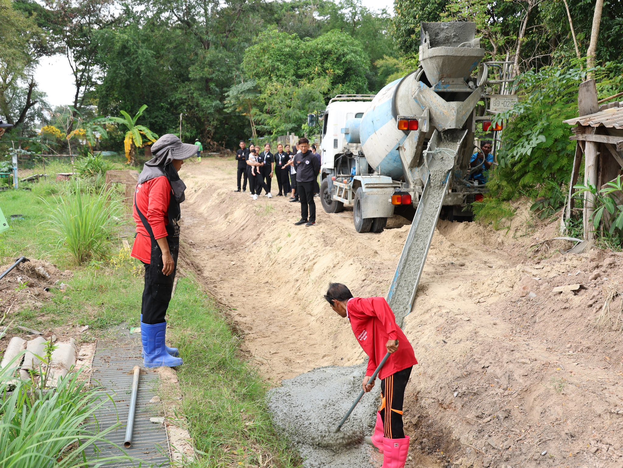 | ออกตรวจเทปูนโครงการก่อสร้างรางระบายน้ำคอนกรีตเสริมเหล็กสี่เหลี่ยมคางหมู ซ.1 ม.11 |