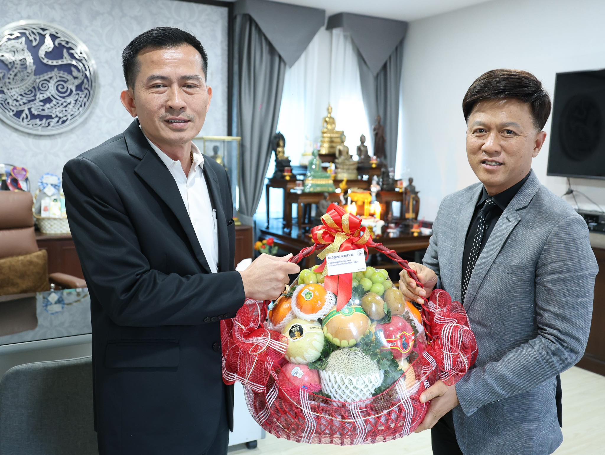 ดร.กิติพงศ์ พงศ์สุรเวท นายกเทศมนตรีตำบลโพธิ์กลาง ร่วมแสดงความยินดีกับ นายชินกร แก่นคง นายอำเภอเมืองนครราชสีมา เนื่องในโอกาสย้ายมาดำรงตำแหน่งใหม่