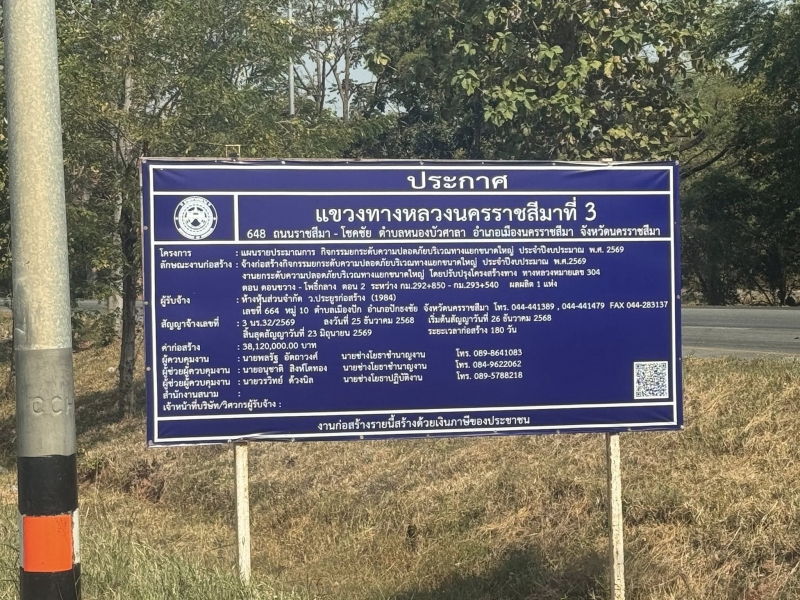 | เปิดเชื่อมสี่แยกไฟแดงถนน 304 แยกมทส.-โพธิ์กลาง งบประมาณปี 69 จำนวน 38,120,000 บาท |