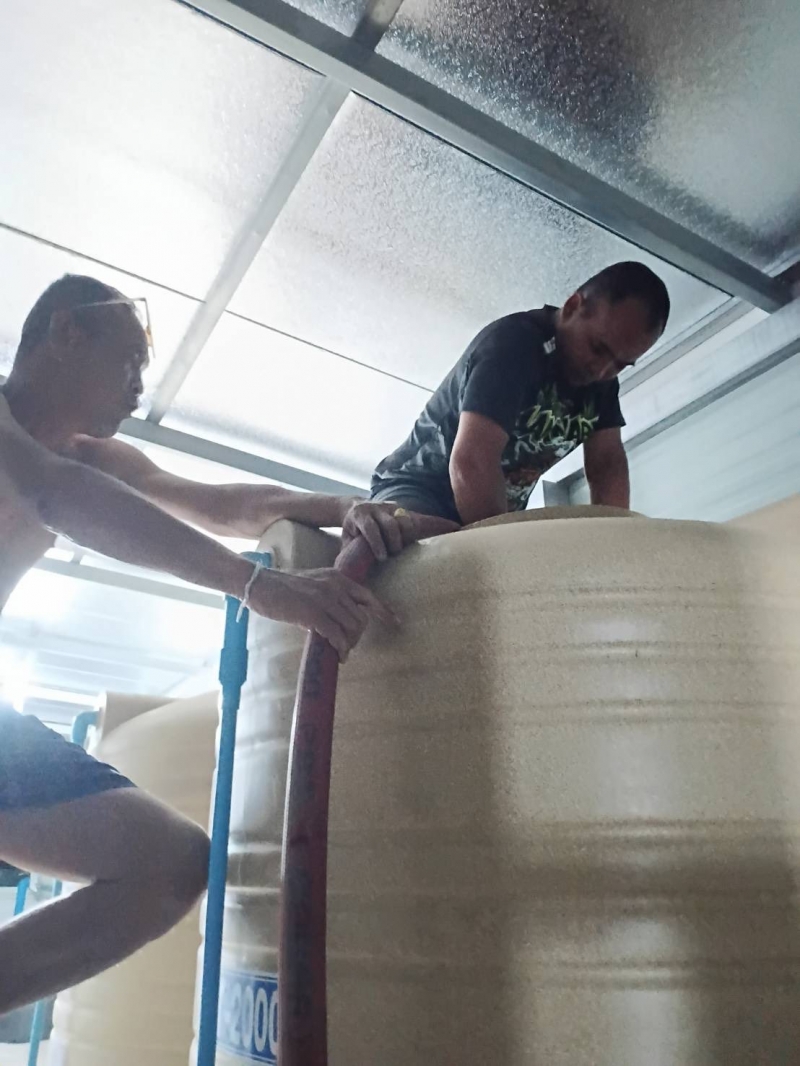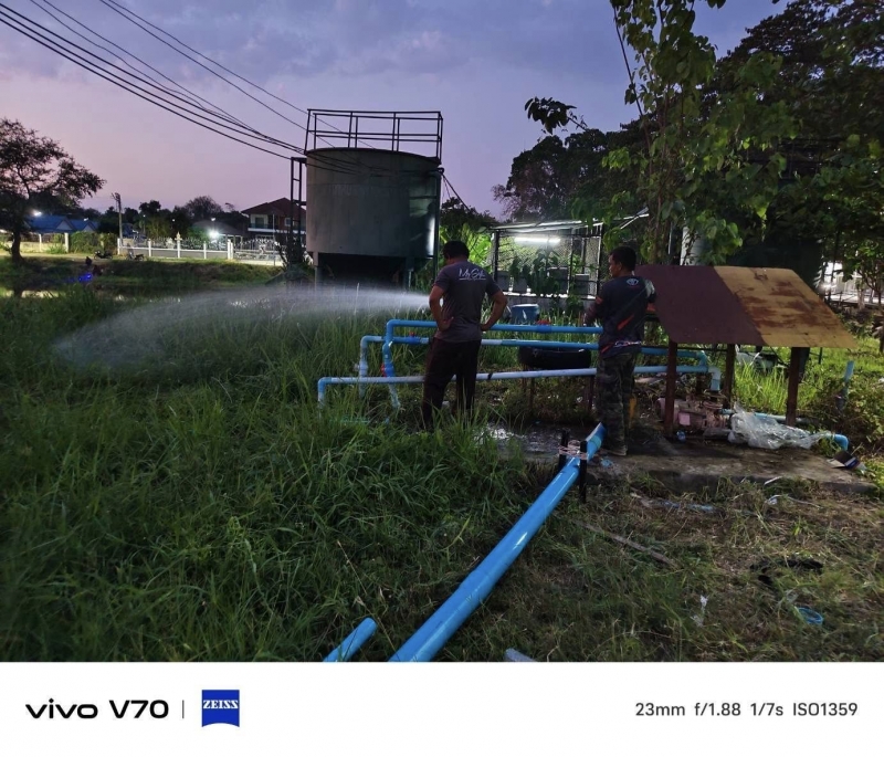 ขออภัยพี่น้องประชาชนที่ประสบปัญหาน้ำไม่ไหล ได้เร่งรัดแก้ไข และช่างก็ทำงานกันทั้งวันทั้งคืน ซึ่งเสียหลายจุดของหมู่บ้านพร้อมกัน และงานป้องกันฯ ได้นำน้ำไปช่วยชาวบ้านตามบ้านเรือน และอัดน้ำเข้าถังแชมเปญตลอด แต่ก็ยังเจอปัญหาเครื่องปั๊มน้ำไฟช็อตเสียหายตลอด