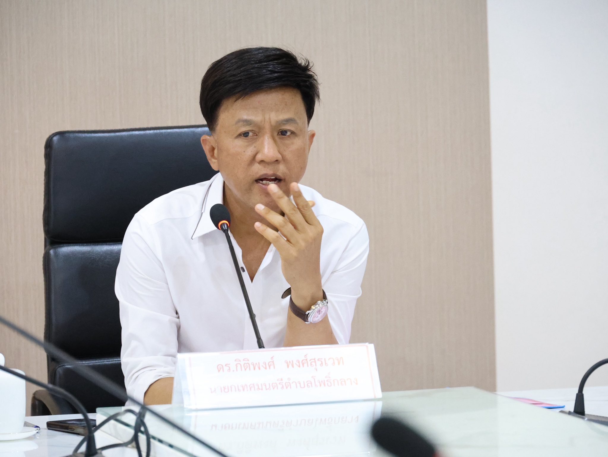 ดร.กิติพงศ์ พงศ์สุรเวท นายกเทศมนตรีตำบลโพธิ์กลาง ประชุมทีมงานเพื่อคัดเลือกภารกิจเข้าร่วมโครงการ สมาร์ท ซิตี้ ของเทศบาลกับสถาบันการอบรมชุมชนปราชณ์เปรื่อง เพื่อเตรียมดำเนินการในต้นเดือน