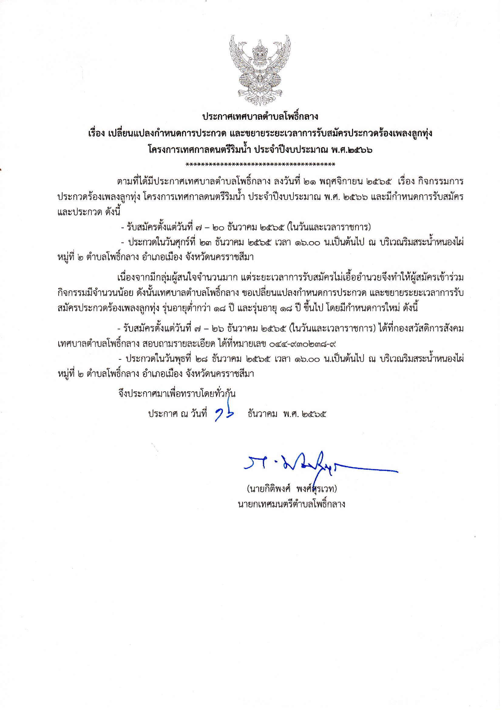ประกาศ เรื่อง ขยายระยะเวลาการรับสมัครประกวดเต้น Cover Dance โครงการถนนวัฒนธรรม ของดีโพธิ์กลาง ประจำปี 2568 |
