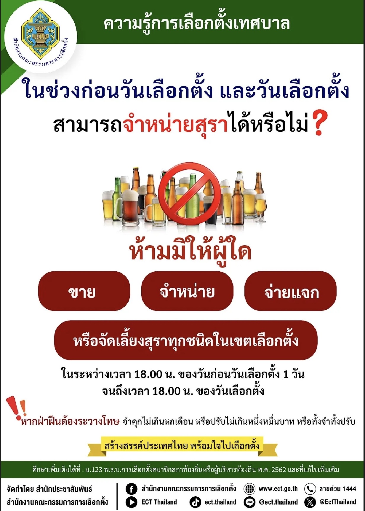 เรื่อง ห้ามขาย จำหน่าย จ่ายแจก หรือจัดเลี้ยงสุราทุกชนิดในเขตเลือกตั้ง